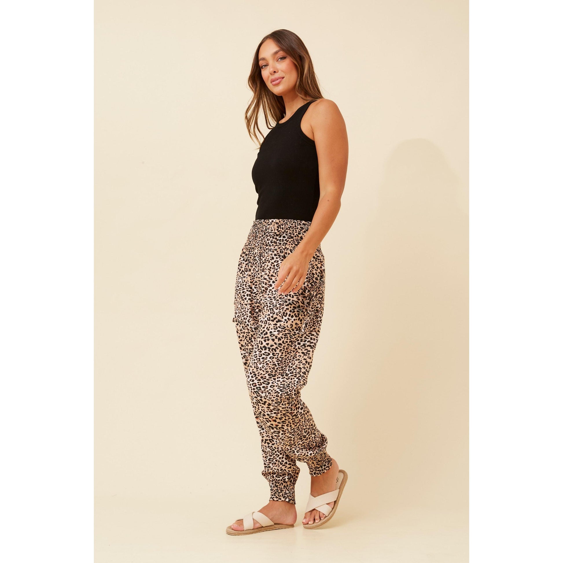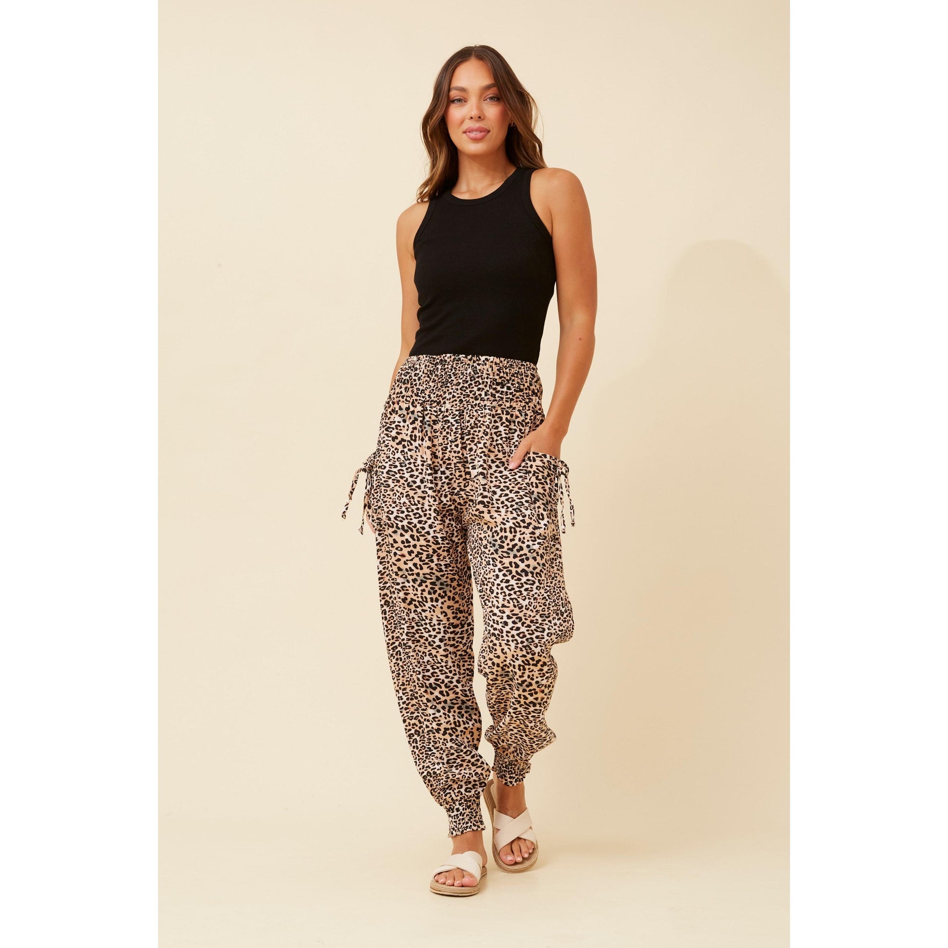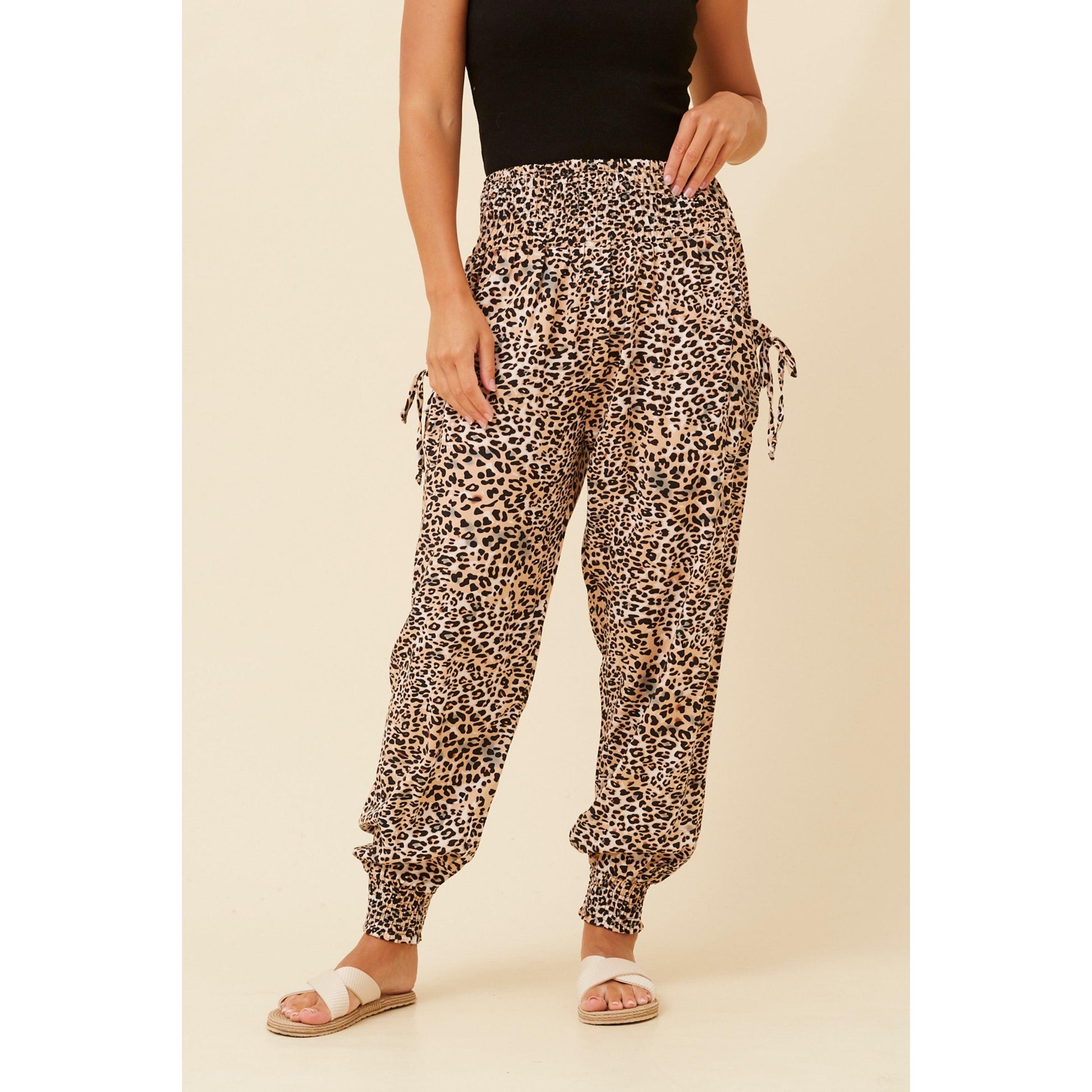 These stylish harem pants are a must have piece for summer styling. A shirred waistband ensures comfortable all-day wear. Elasticated leg cuffs create further shaping for that classic harem look. Easy to style with a fitted crop top or tucked in boxy T-shirt.