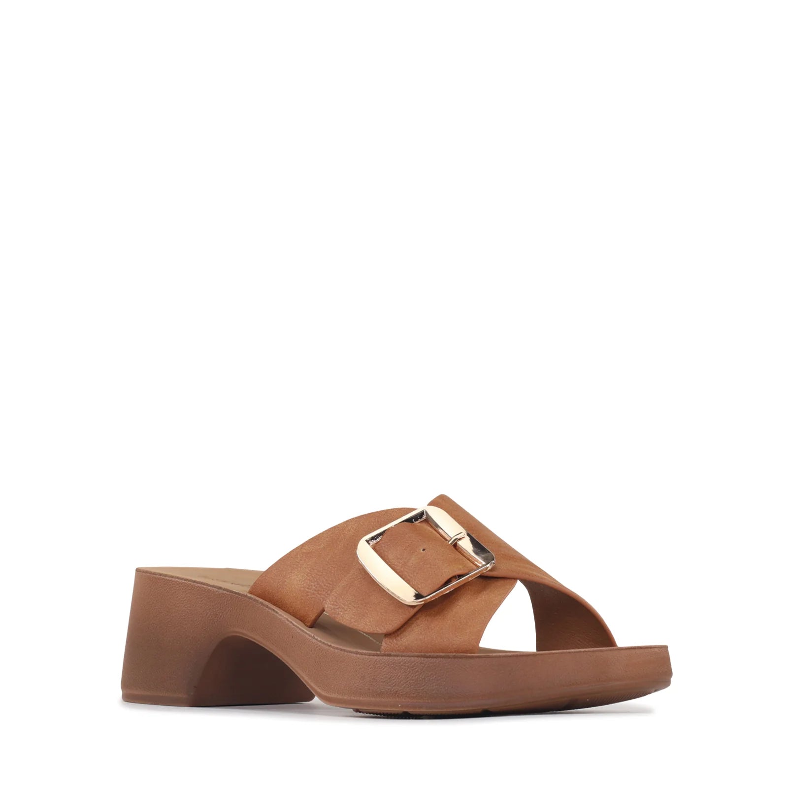 Fashioned from a premium manmade material, this sandal mirrors the supple texture and natural grain of traditional leather—offering the same elevated feel minus the animal-derived components. -