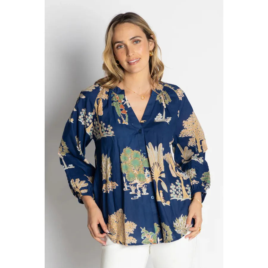 Our Amrita shirt is crafted from 100% cotton, offering a crisp and breathable feel perfect for our warmer weather. Its 3/4 sleeves with elasticized cuffs provide a tailored yet comfortable fit, complemented by a refined buttoned front with flattering V neck. Designed in Australia this shirt embodies understated elegance and exceptional craftsmanship.