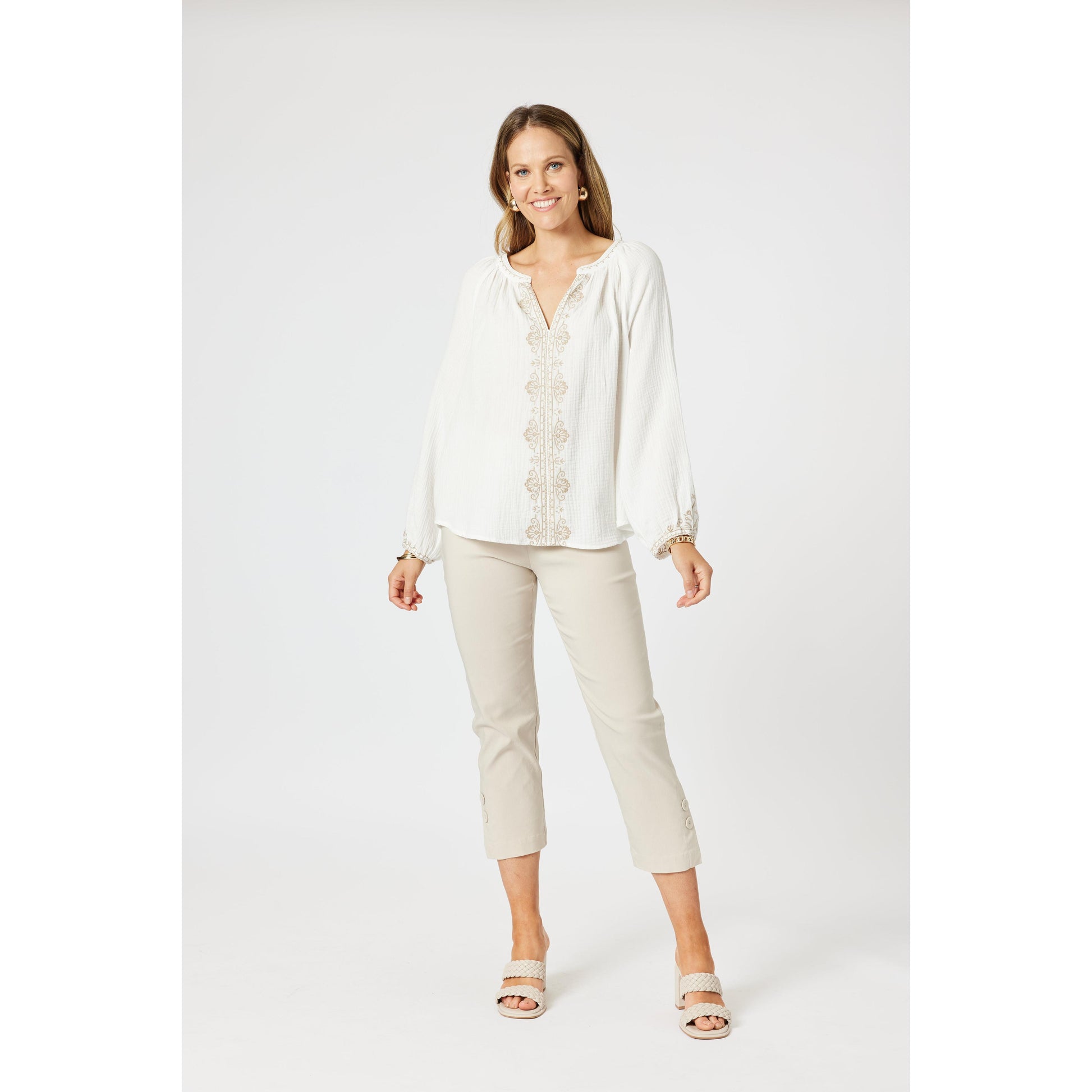 - The Cross Stitch Embroidered Top is a timeless wardrobe staple crafted from 100% cotton, offering natural softness, breathability, and all-day comfort.