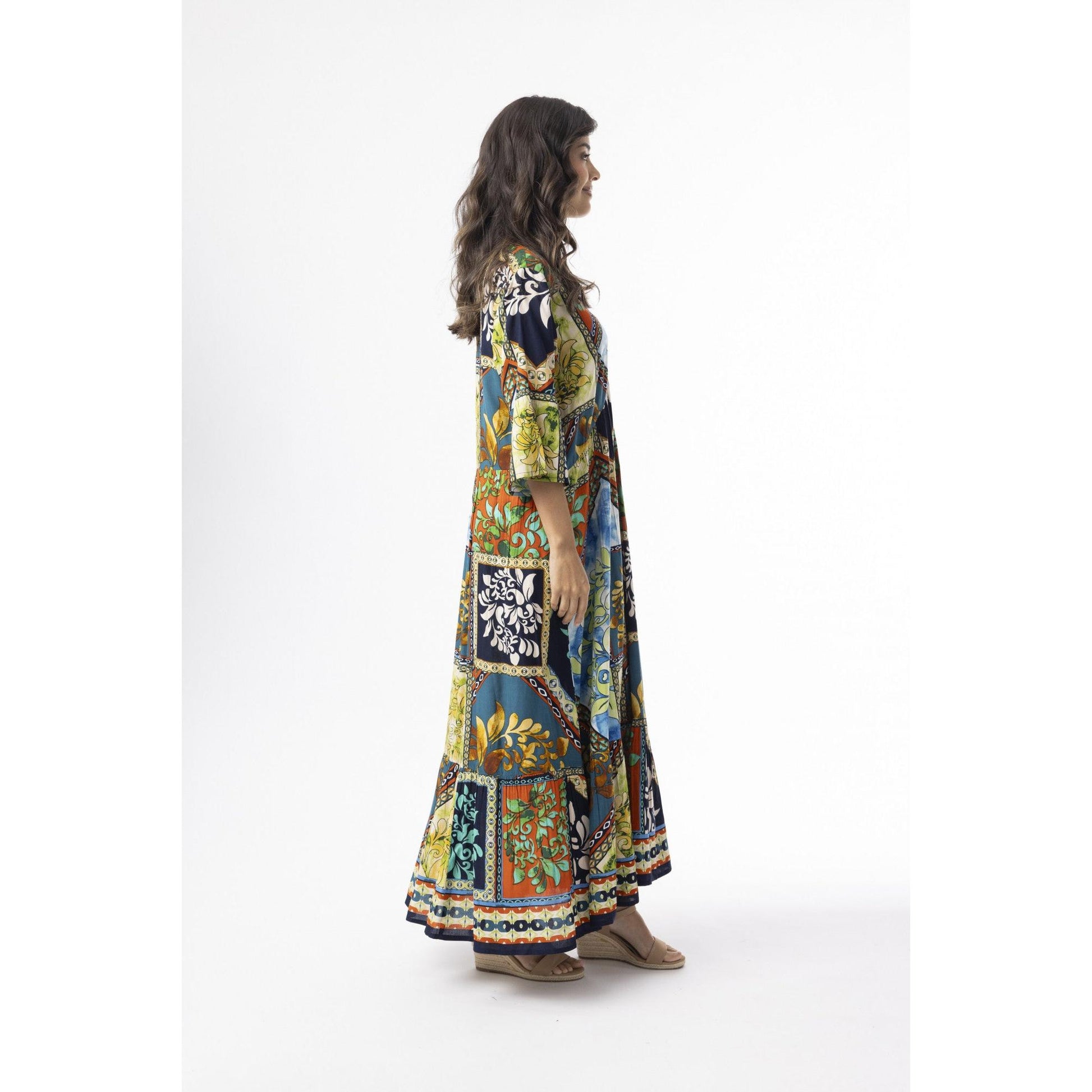Welcome summer in style with our gorgeous Cabo Fria Frill Hem Dress. Perfect for beach holidays, this flowing dress features a gorgeous vibrant print, 3/4 sleeves, a v-peak seam at the waist, and a flattering V-neckline. This beautiful dress is a must have for your summer wardrobe!