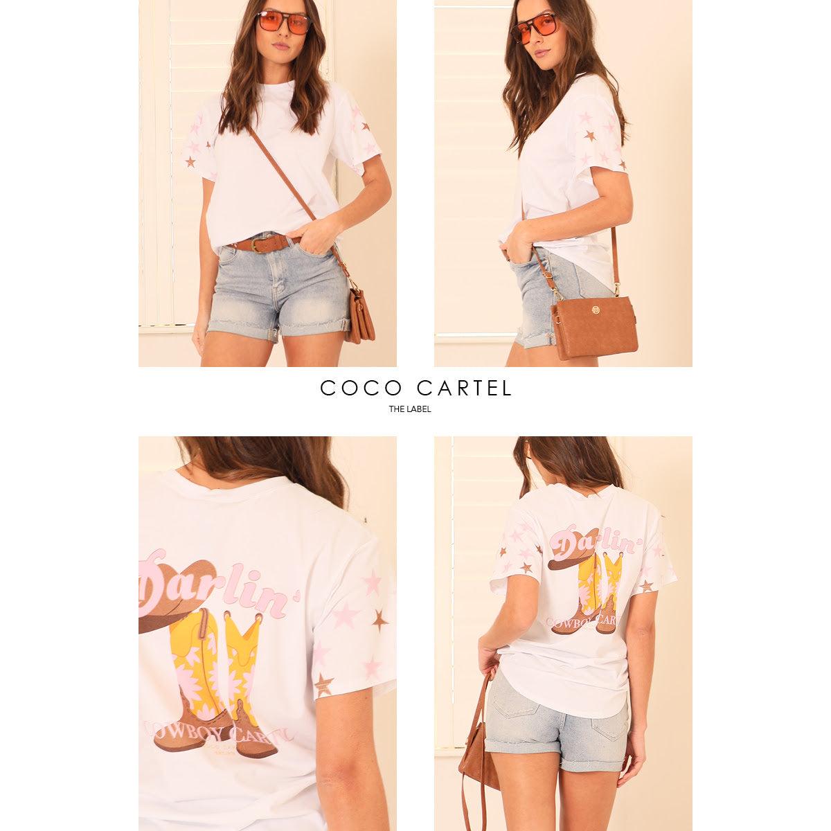 Step into a laid-back cool look with our new the Darlin tee in Black from Coco Cartel.