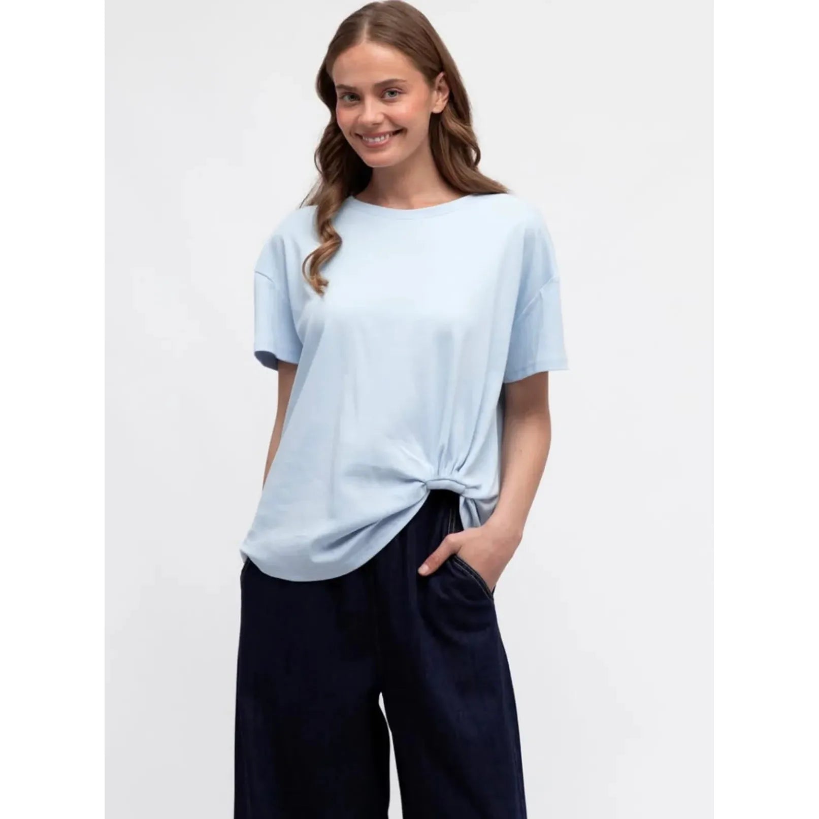 The name says it all with this beauty!! The Easy Tuck Tee is soo easy as there is no tucking at all! The cute rolled hem detail at the front gives that lovely elongated shape that will stay in just the right spot all day long. In a gorgeous neutral colour its the perfect match for all your favourite bottoms.