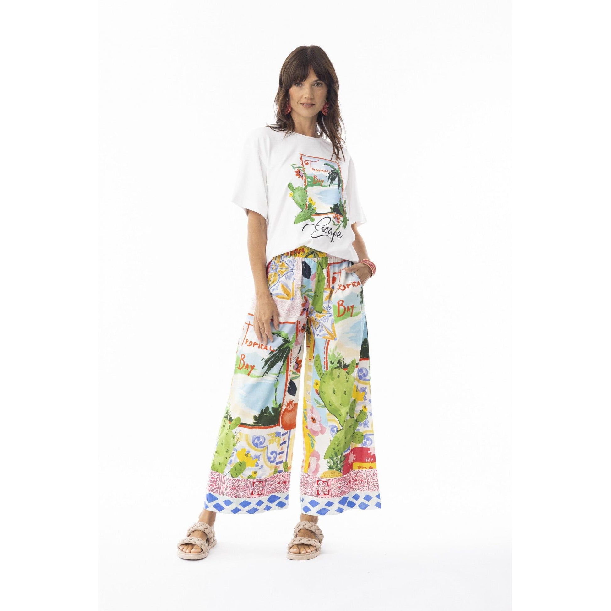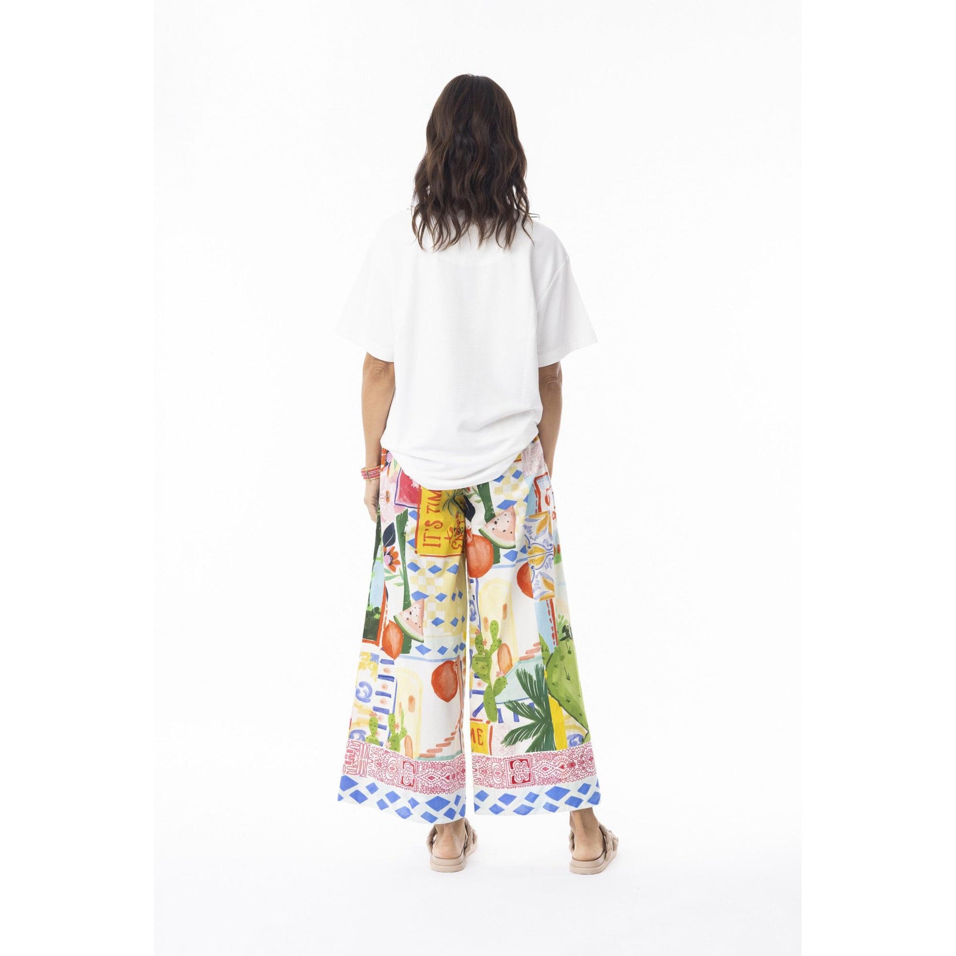 Write your escape story in the coastal Erica Pant. Lightweight and comfortable, these pants offer a flowing silhouette in silky rayon, making them perfect for warm sunny days. Its pretty mexican seaside design and colours make these pants the perfect addition to your summer wardrobe, blending style and ease!
