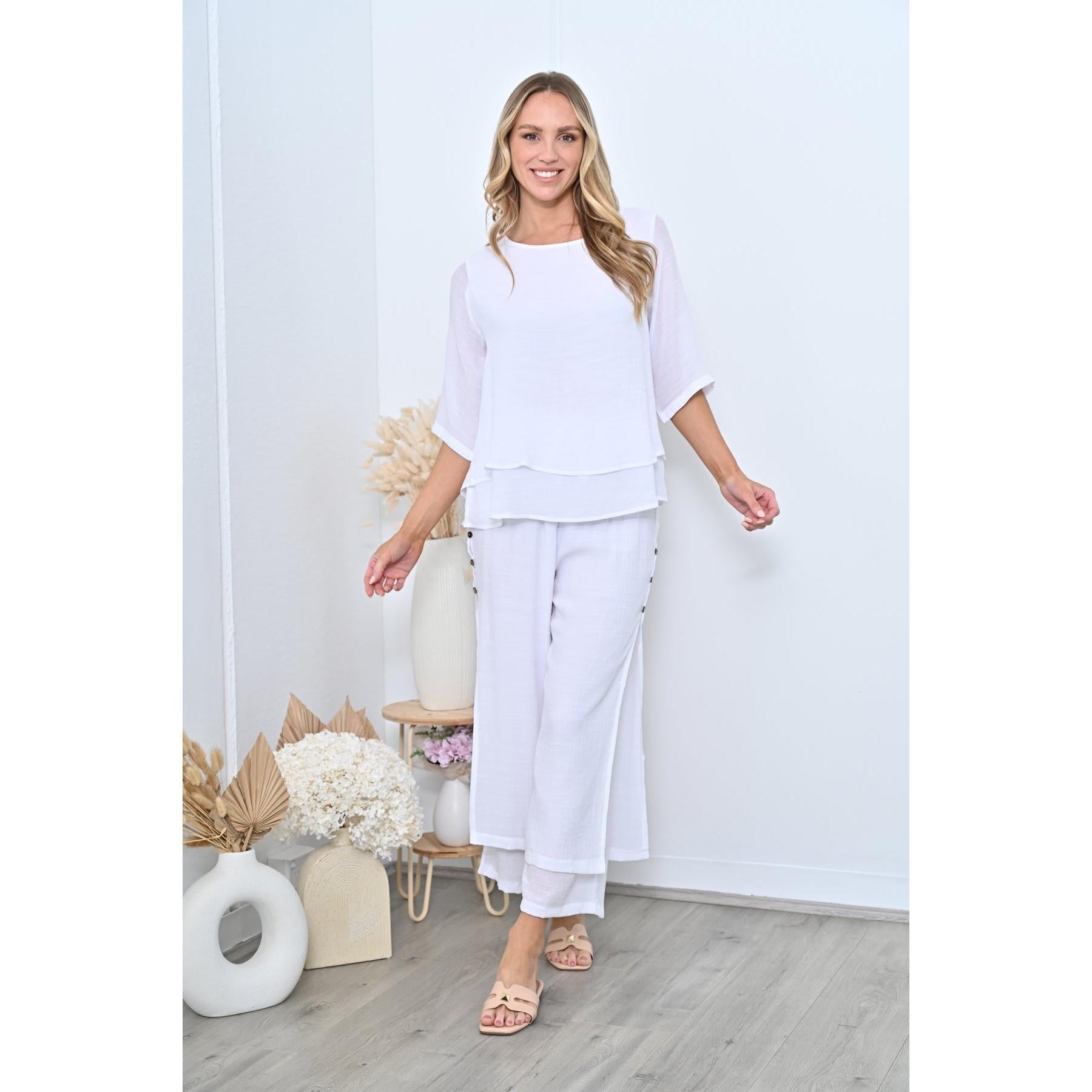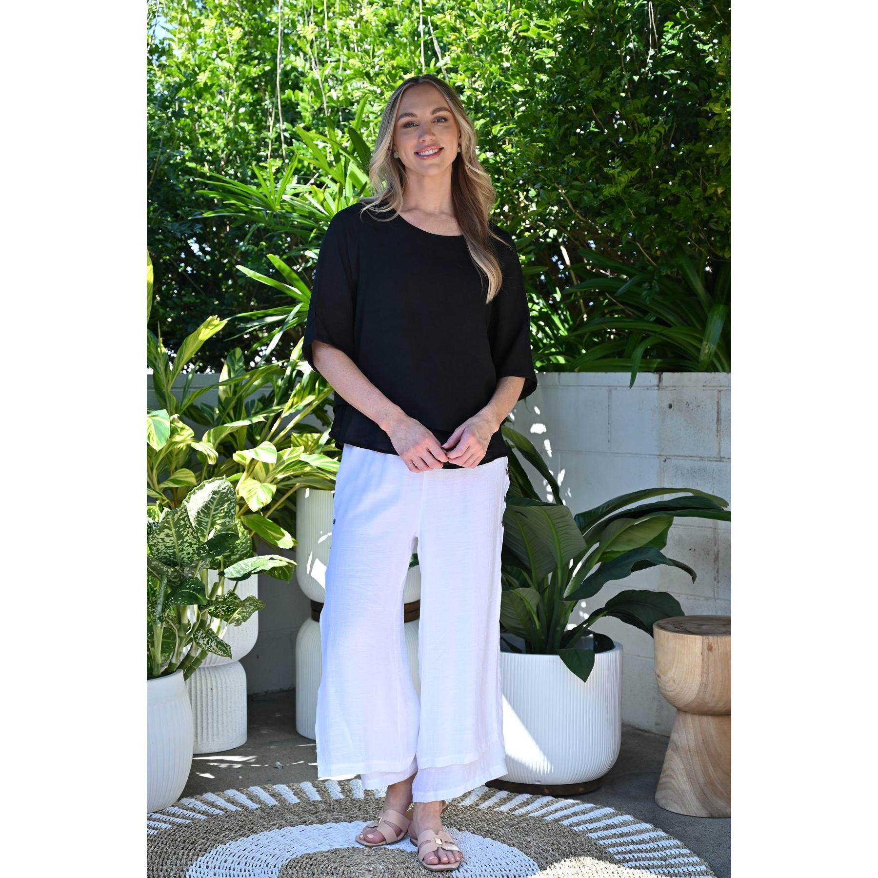 Effortlessly stylish and comfortable, the Erin Pant is perfect for any occasion. Made from a lightweight cotton blend, it provides a cool and breezy feel. The shirred waistband offers both stretch and smoothing, while the floaty layered leg silhouette adds a touch of elegance.
