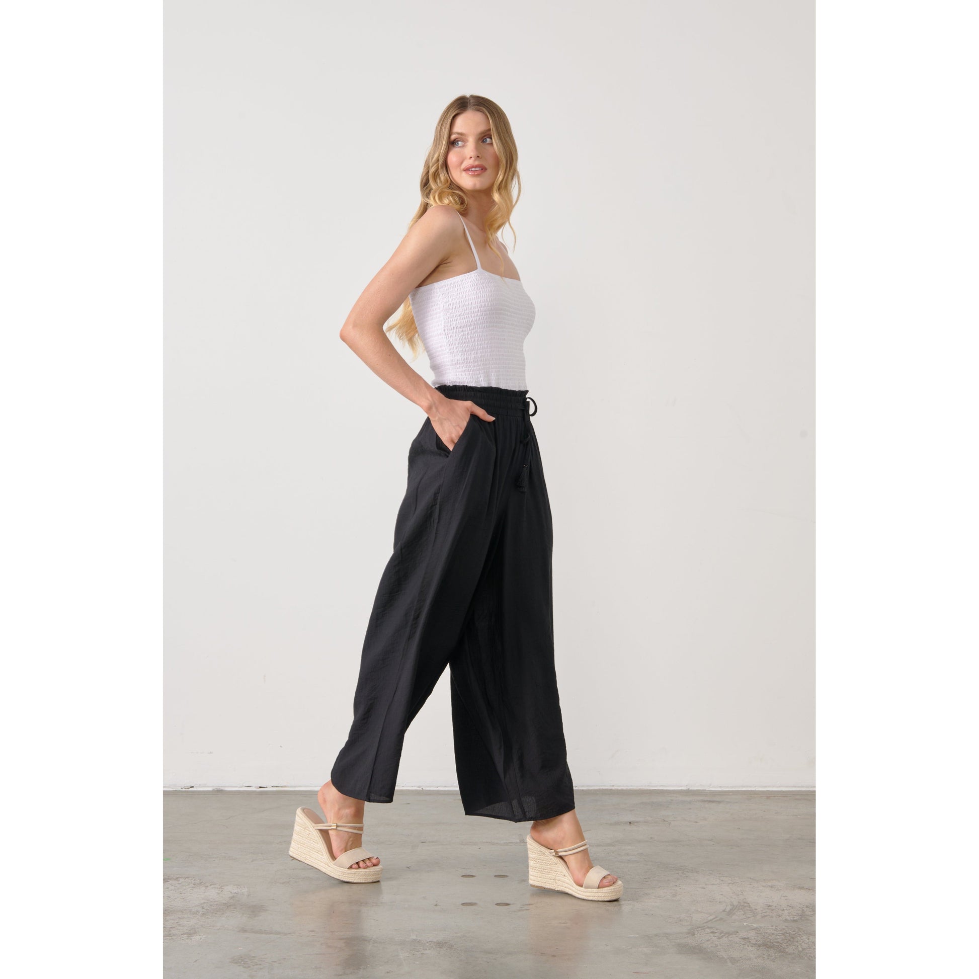 The Holly Wide Leg Pant in Black combines comfort and style with its wide elastic waistband and adjustable drawstring. Crafted with a soft fabric, these pants offer a relaxed silhouette and practical side pockets for convenience. Ideal for both casual and elevated looks, they deliver effortless versatility without compromising on comfort.