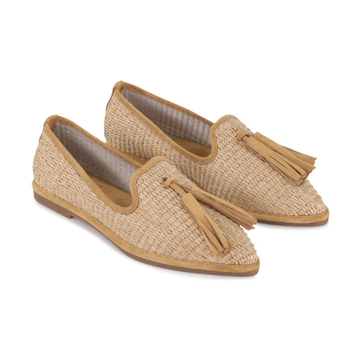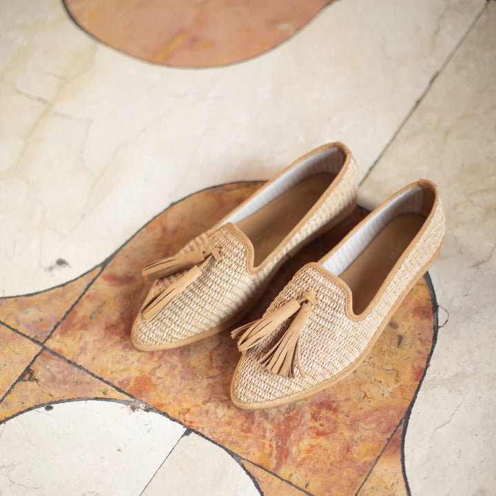 Chic and effortlessly wearable, these woven loafers add a refined touch to warm-weather looks. Featuring a textured woven upper, they’re finished with a classic tassel detail for subtle sophistication. The slip-on silhouette offers easy wear, while the flat sole keeps them comfortable for everyday use. Perfect for pairing with relaxed tailoring, dresses, or casual denim, these loafers bring timeless style with a light, breathable feel.