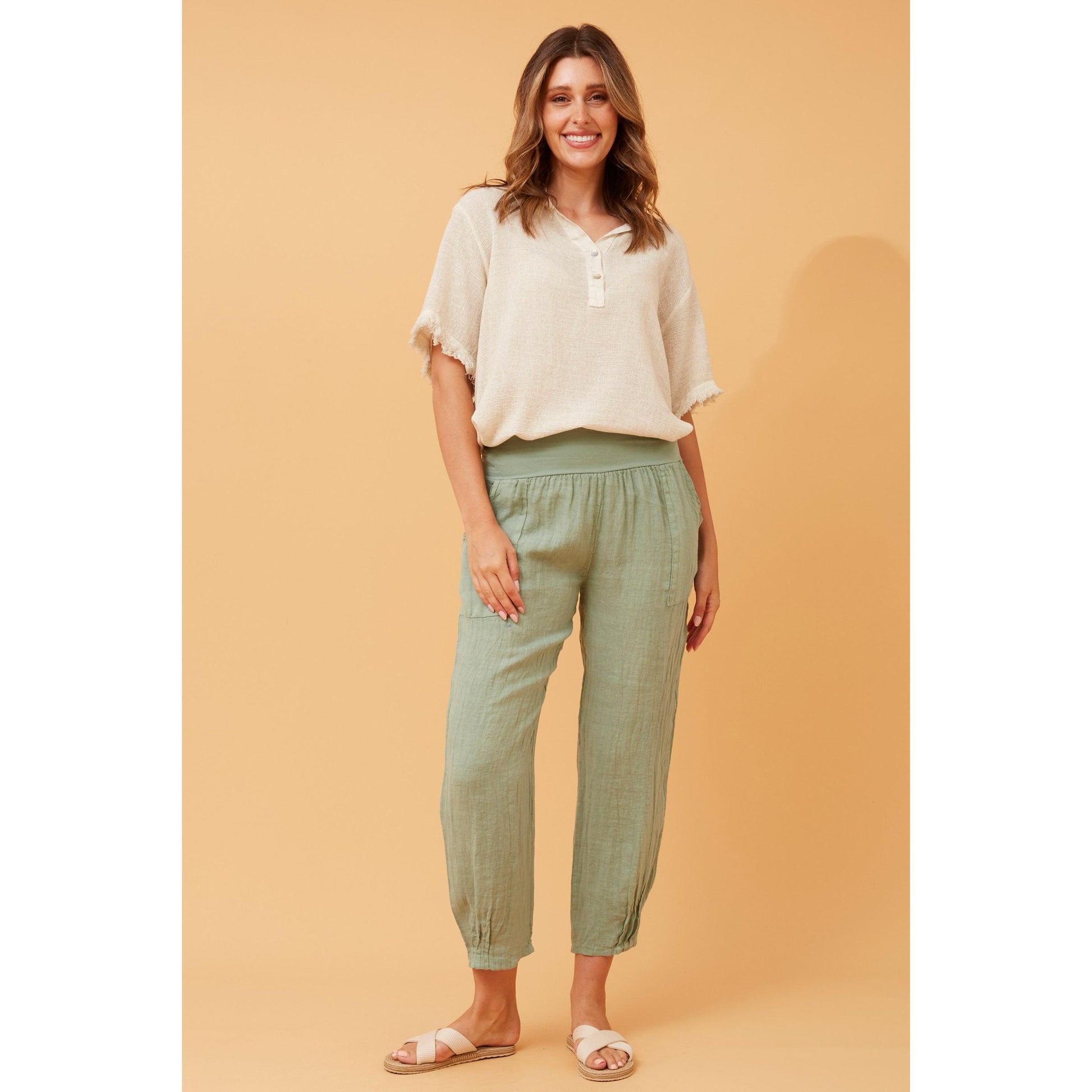 Look and feel fab with our Leonie Linen Pants. Pair these with your favorite tee or tank top to enjoy a comfortable look like no other!
