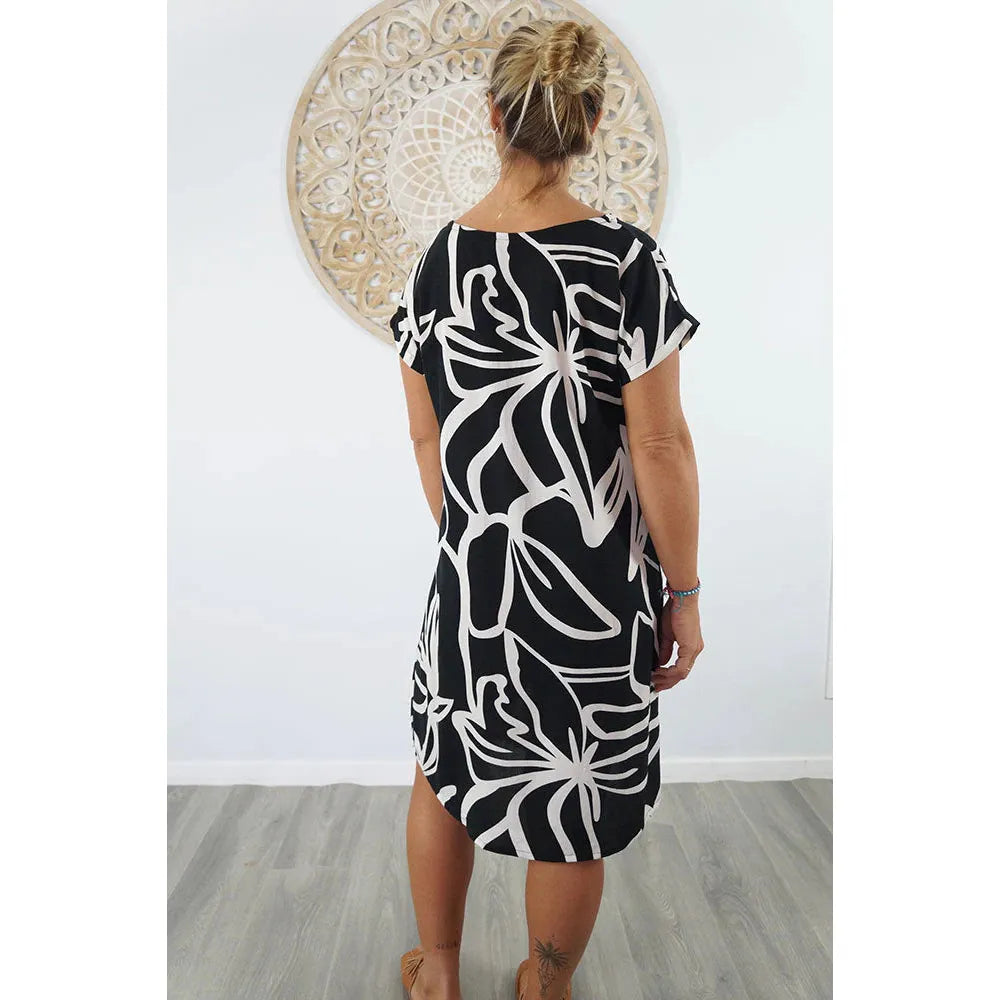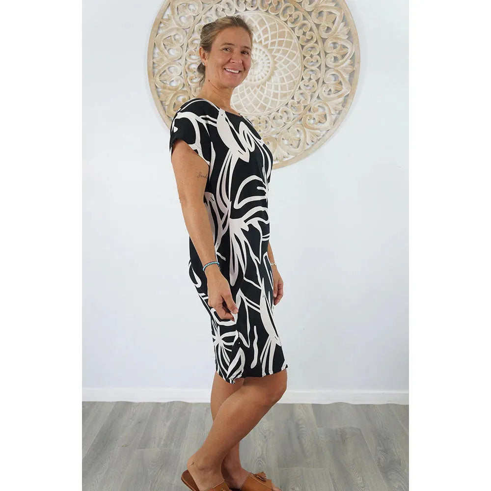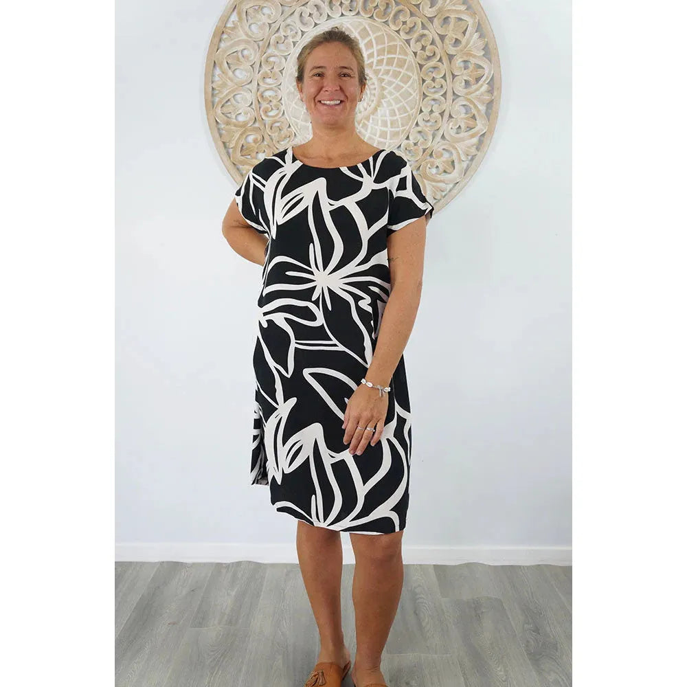 The Michelle Dress is a tried and true favourite. The simple t-shirt shape is made elegant with soft and smooth rayon material and added length on the bottom so you can wear the Michelle to work or over bathers. Versatile and comfortable, the Michelle Dress is a timeless style. Available in sizes 8-10, 12-14, 16-18.
