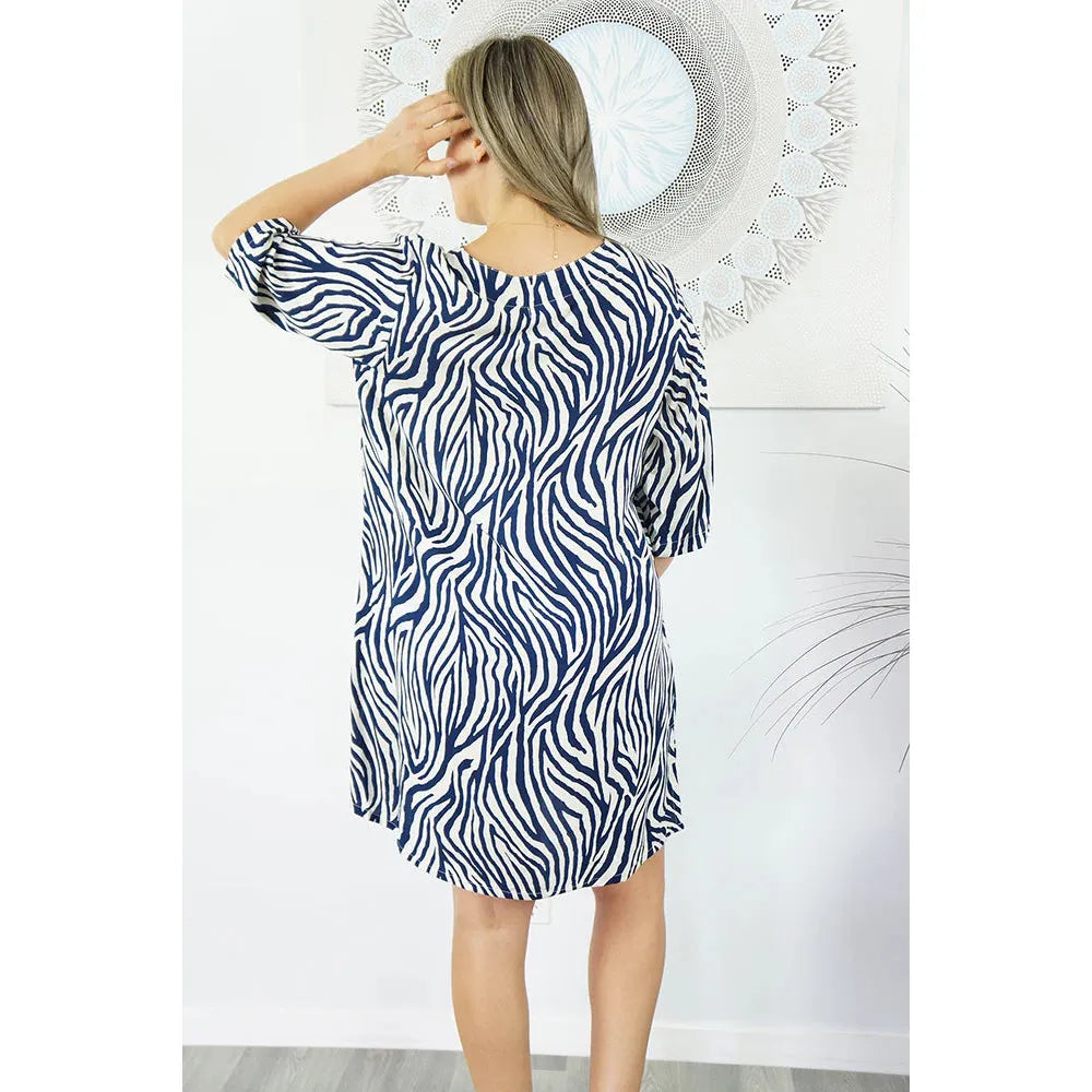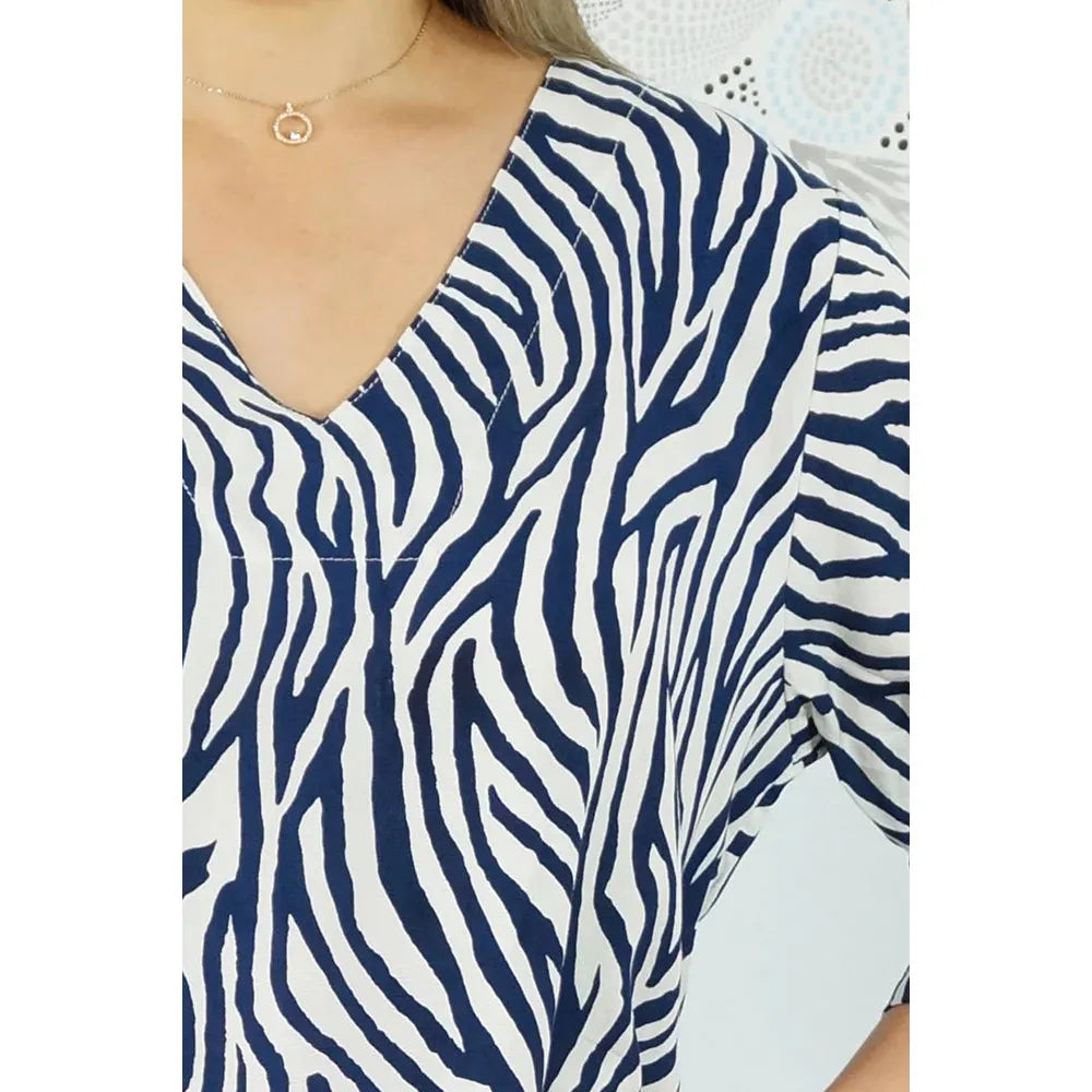 Made from rayon, this casual 3/4 sleeve tunic is great for around the pool or at the beach. Available in sizes 8-12, 14-18