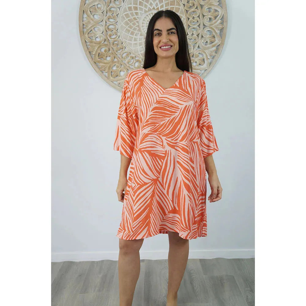 Made from rayon, this casual 3/4 sleeve tunic is great for around the pool or at the beach. Available in sizes 8-12, 14-18