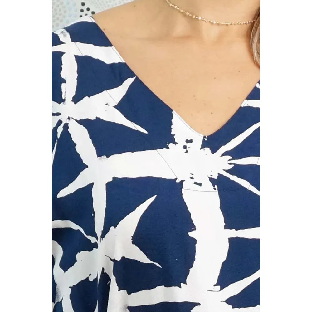 Made from rayon, this casual 3/4 sleeve tunic is great for around the pool or at the beach. Available in sizes 8-12, 14-18