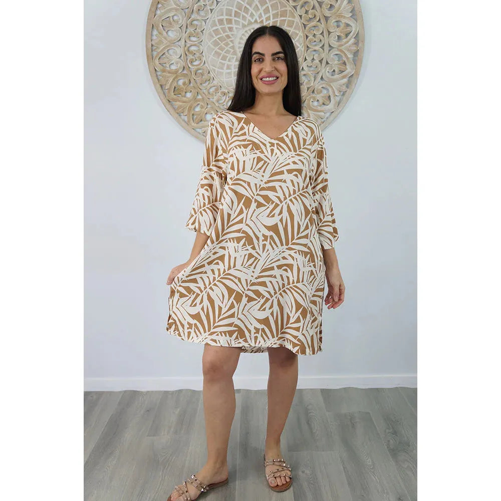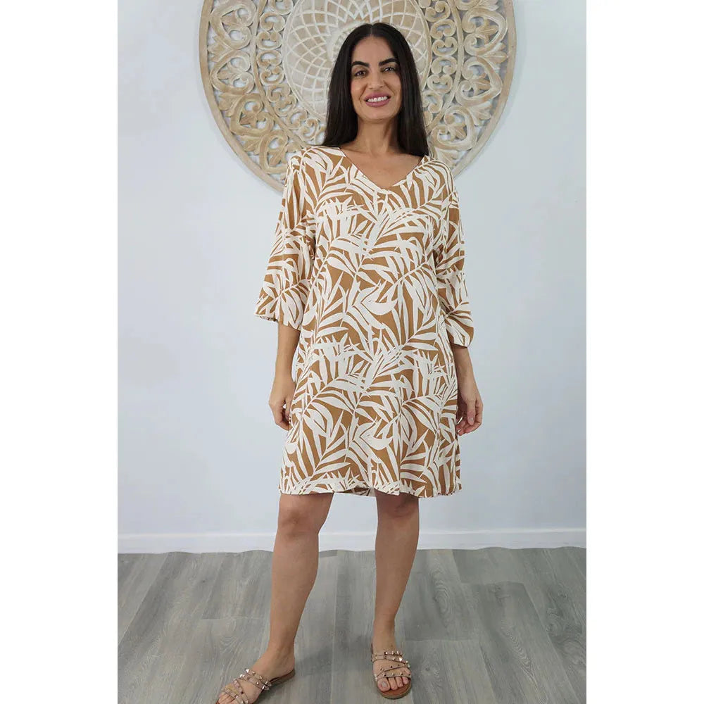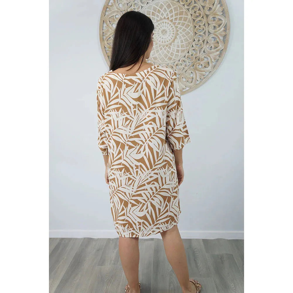 Made from rayon, this casual 3/4 sleeve tunic is great for around the pool or at the beach. Available in sizes 8-12, 14-18
