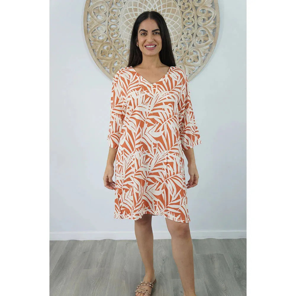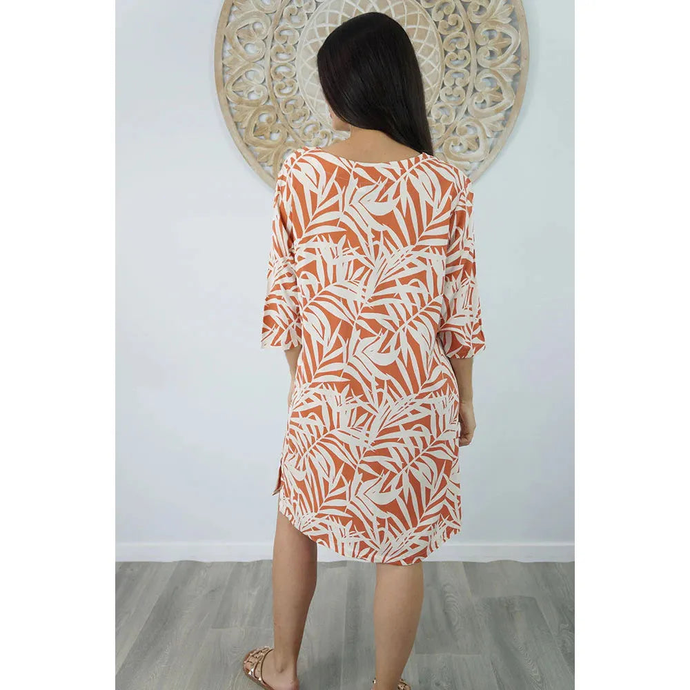 Made from rayon, this casual 3/4 sleeve tunic is great for around the pool or at the beach. Available in sizes 8-12, 14-18