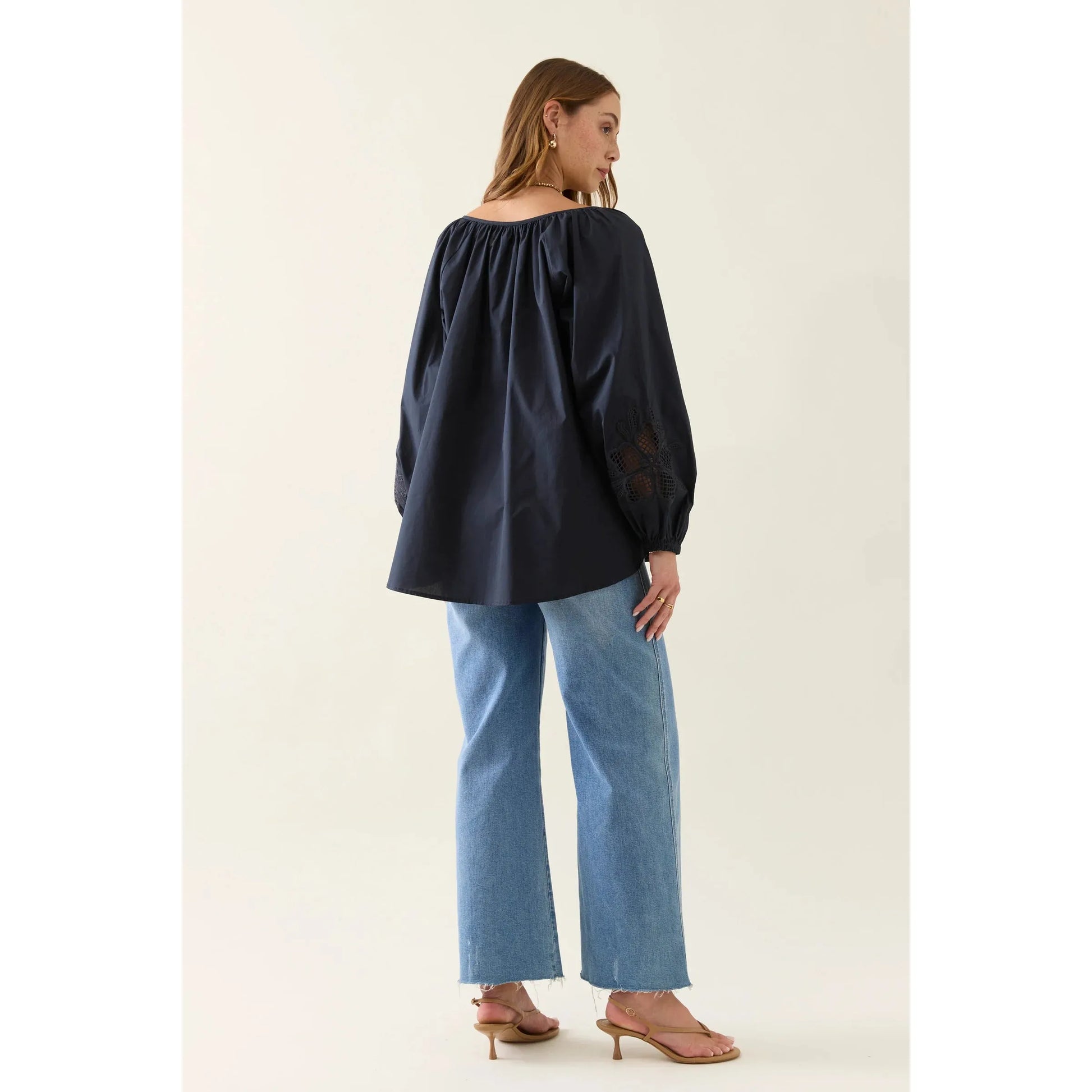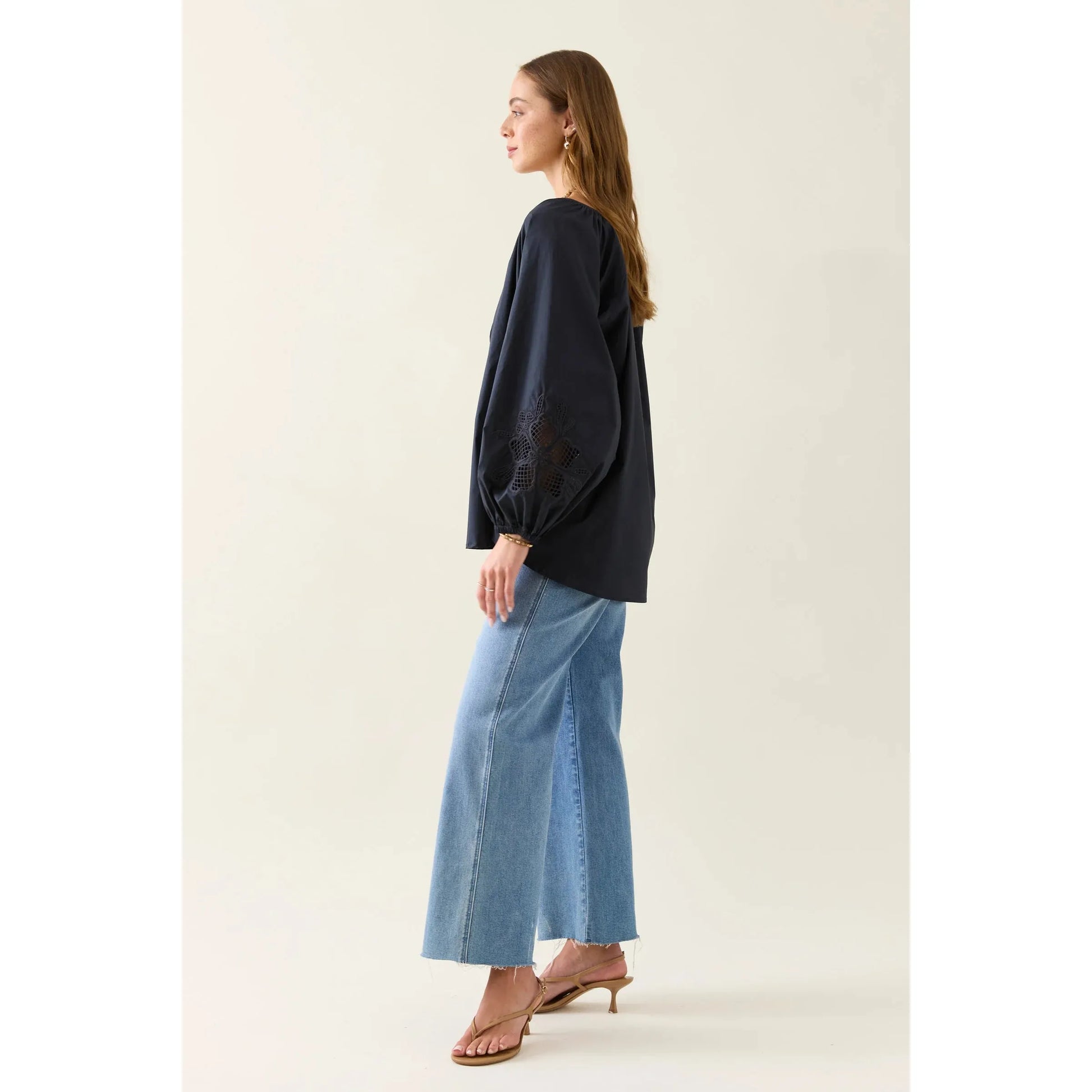 Our Ilsa Blouse is a timeless wardrobe favourite. Made from cotton poplin with delicate cutwork embroidery and featuring tie detailing at the neckline. This blouse gives both a flattering shape and elegant coverage.