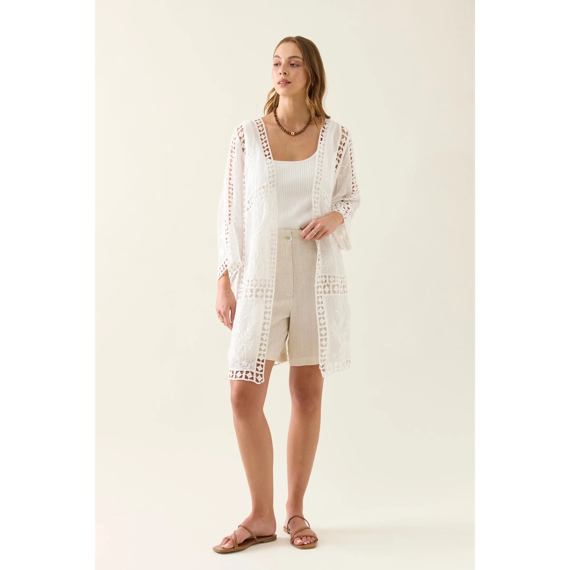 Breathable, comfortable and light, the Oline Lace Kimono is the perfect summer throw-on. Made from soft cotton with floral embroidery and cut-out lace detail, it elevates even the simplest look.