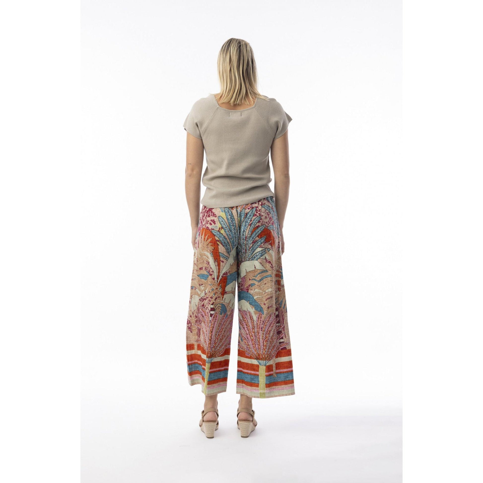 Stay cool and effortlessly chic with our Ponta Verde 3/4 Length Pants. Designed with an elasticated waistband, a functional front tie, and convenient side pockets, these breathable linen pants are made for all-day comfort. The cropped silhouette is finished with a stylish thick hem at the bottom, adding structure and a refined touch.