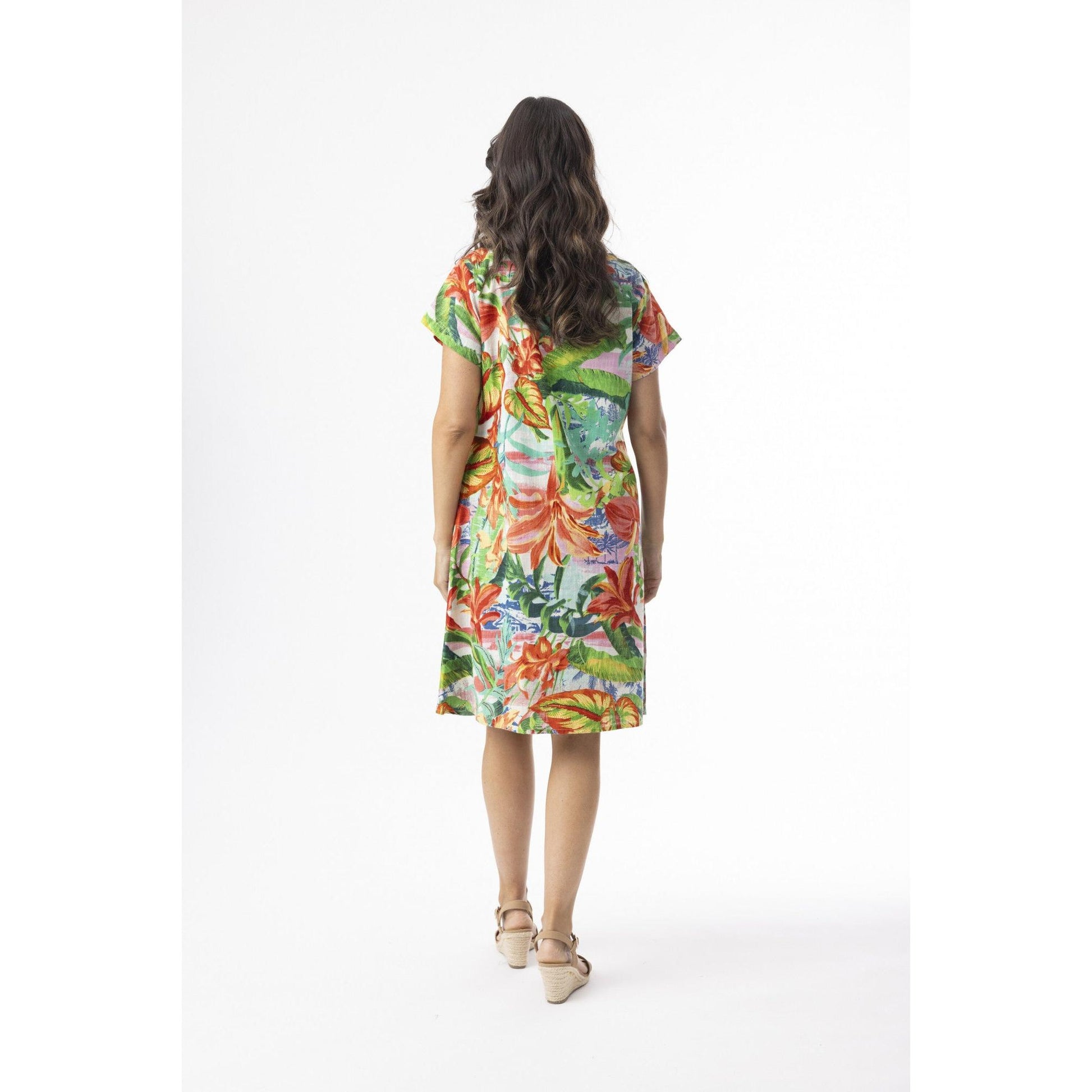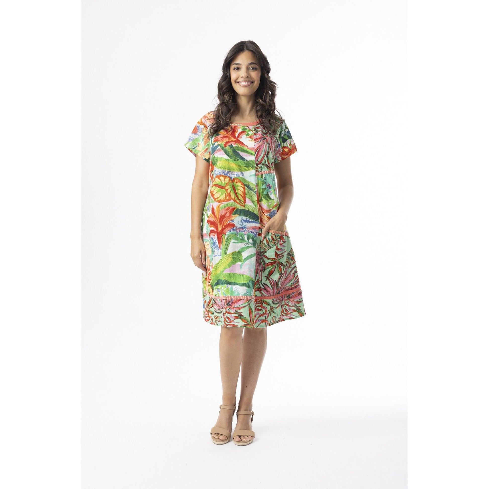 Embrace effortless elegance with our Equador Patch Shift Dress. Featuring a botanical print, comfortable open round neckline, short sleeves, beautiful stitch detail and relaxed silhouette that falls at the knee, this dress is practical and stylish!