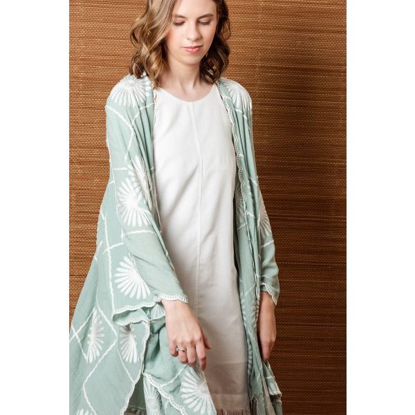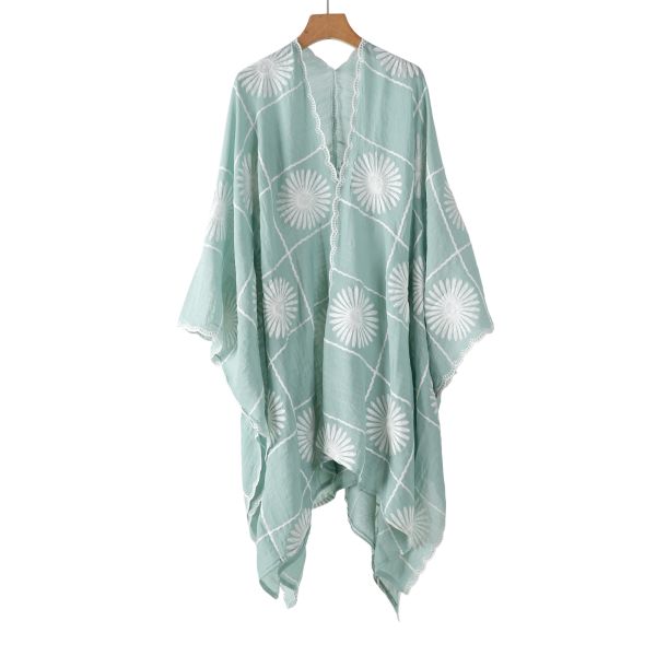 Slip into the playful charm of the Whitney cover up. Crafted from a breezy blend of 65% cotton and 35% viscose, this one-size piece floats effortlessly with embroidered flowers adding a touch of whimsy. Measuring 88 x 120 cm, it’s perfect for layering over your favorite outfit or swimwear, giving you a light, airy feel wherever your day takes you.
