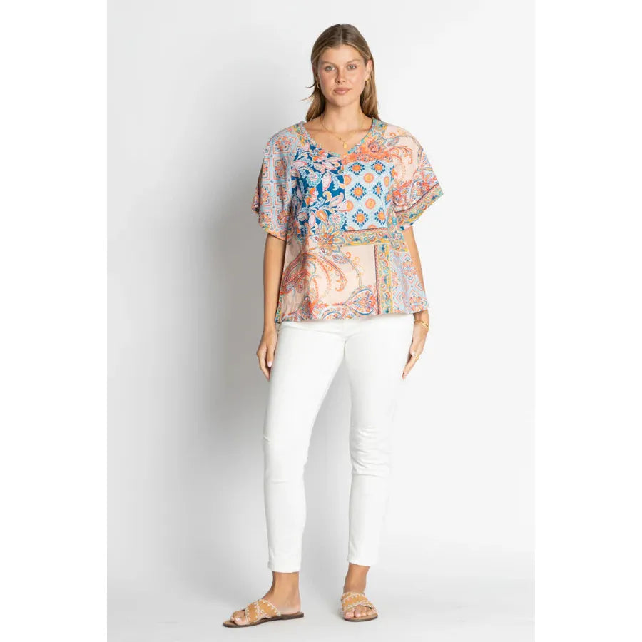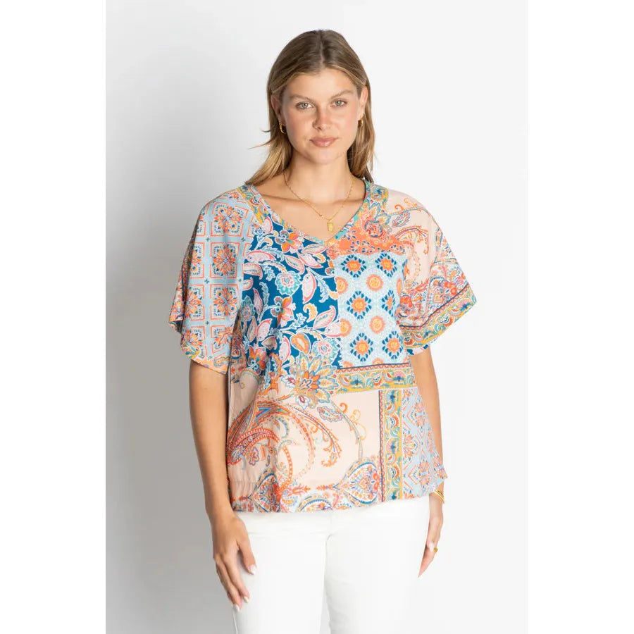 The Wisconsin Top is a relaxed, effortlessly chic style made from 100% cotton for all-day comfort. Featuring a flattering V-neckline, wide raglan sleeves to the elbow, and a striking digital print, this top brings modern ease to your everyday wardrobe. Designed in Australia, it’s perfect for pairing with jeans, skirts, or tailored pants for versatile styling.